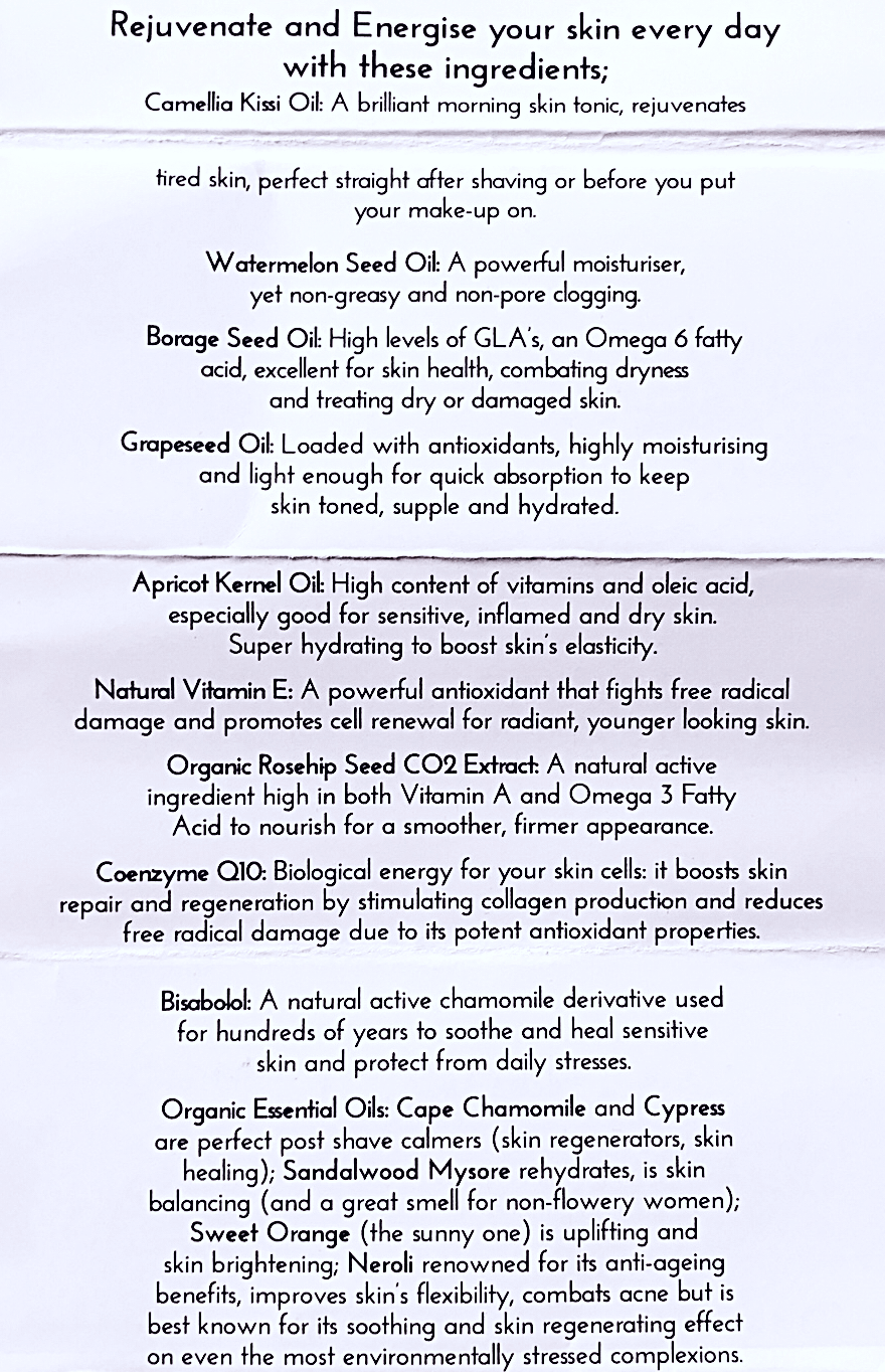 This is just one aspect that attracts me to their brand, their ingredients are carefully sourced with mindfulness of the impact that their imprint has and will have on the environment and the people they source the ingredients from. All Roselana products are not tested on animals and are non toxic, they are free from parabens, PEGS, sulphates, fragrance, synthetic colourants or petroleum. All the preservatives used are acquired from natural sources. Beauty & the Beast face oil is suppose to be a rejuvenating and energise unisex face oil to be used alone, as a face primer or as a post shave soother. This oil is perfect because it is absorbs in to the skin within a few minutes yet leaving the skin well hydrated and prepared for the next step if needed. Ingredients included are a powerhouse cocktail targeting hydration, repair, fine lines and wrinkles, signs of premature ageing by helping to repair and regenerate the skin encouraging collagen production all thanks to the high anti oxidant properties contained within the highly impressive ingredients list.